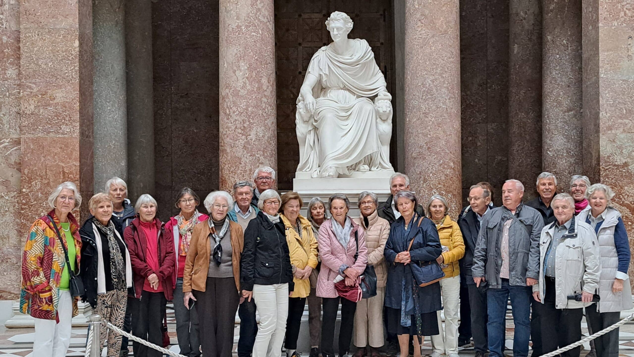 Nach dem gemütlichen Mittagessen im Bischofshof am Dom ging es zur Walhalla, der berühmten Ruhmeshalle oberhalb der Donau. Von Ludwig I. als Ort der Vorbilder für alle Bayern konzipiert, ist sie eine beeindruckende Ansammlung von Marmor-Köpfen herausragender Gelehrter und Persönlichkeiten mit „teutscher Sprache“. Noch zwei Plätze für zwei Büsten seien frei – und diese wurden genau am Tag des Besuchs der Senioren-Union Rosenheim bestätigt: Es sind die von Franz Josef Strauß und Hannah Arendt.